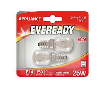 Heat Resistant Oven Lamp 25W 150 lumen 3,000K (Warm White) Pack of 2