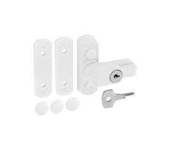 An easy to fit security product designed to add extra security by preventing unwanted entry via doors and windows. Face fix onto window/door frame and pull arm over opening frame to lock. Locking Feature comes with 1 Key.